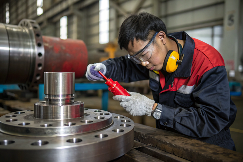 Pengujian menggunakan cairan penetran untuk menemukan cacat permukaan seperti pori, retak halus, dan cacat las.